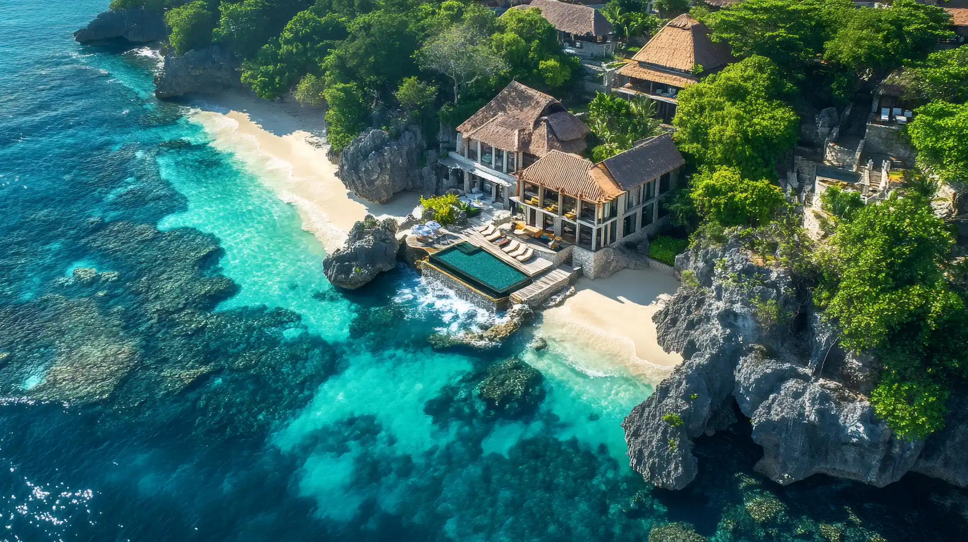 A lavish villa with stunning ocean views, complete with private infinity pool and tropical gardens.